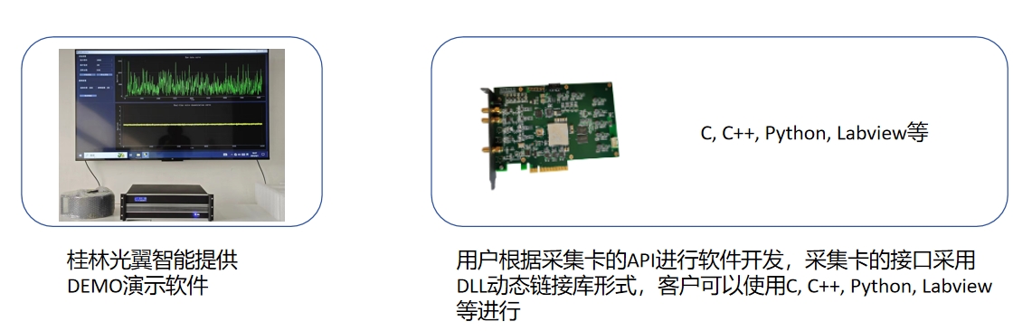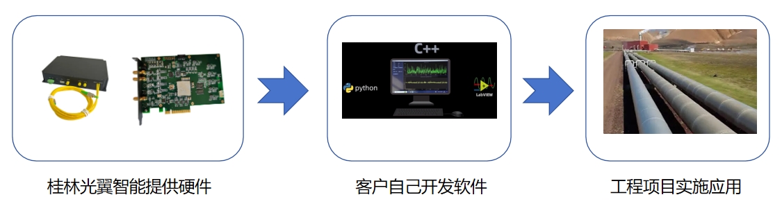 我們公司是分布式光纖振動(dòng)DVS/DAS系統(tǒng)的上游廠商,我們提供DVS/DAS系統(tǒng)的硬件(DVS/DAS一體化模塊 + 采集卡),我們的采集卡也提供了API接口,客戶需要基于我們的API接口開發(fā)自己的應(yīng)用軟件程序。